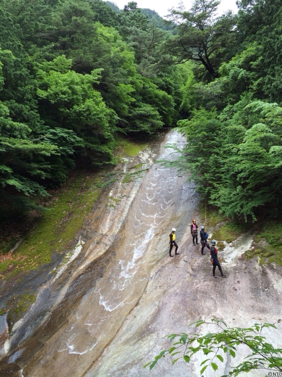 国立公園に指定されている滑床渓谷で、キャニオニングに挑戦! 岩肌を登るときは、とてもワクワクしました!