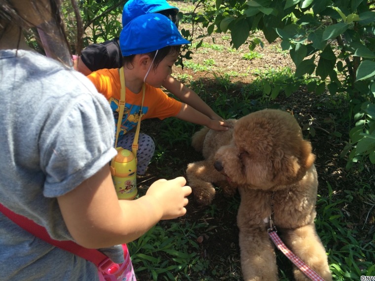 元気いっぱいのみんなは、たくさんブルーベリーを分けてくれました。ジジも子どもたちに大人気!