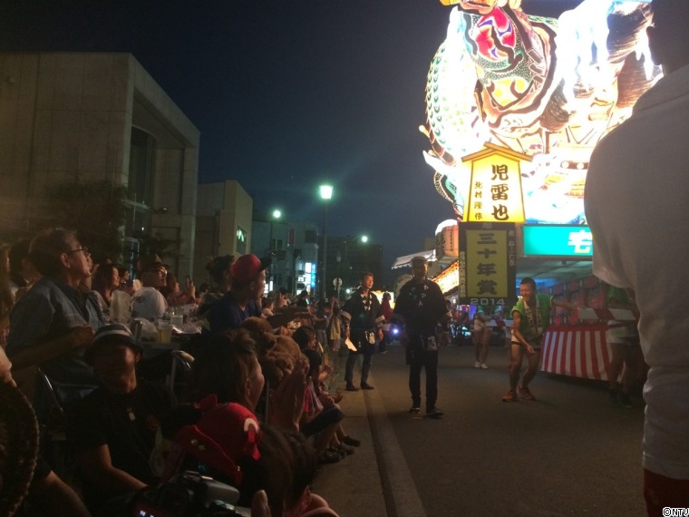 そして日も暮れて、いよいよねぶた祭がスタート! 大迫力のねぶたが何台も通り、皆さんの盛大なかけ声から、祭りにかける意気込みが伝わってきました。