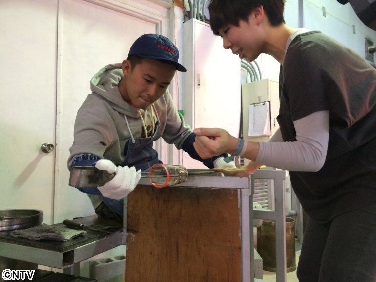 溶けたガラスは思った以上に柔らかくて、遠くからでも熱が伝わってくるほど熱かったです。