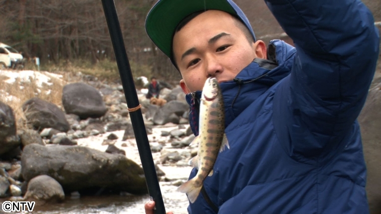 僕もヤマメ釣りに挑戦しました! 雪が降る中、粘ること1時間、待望のヤマメが釣れました! その後も次々に釣れ、合計4匹釣ることができました! 釣り運のない僕ですが、今日はラッキーでした!
