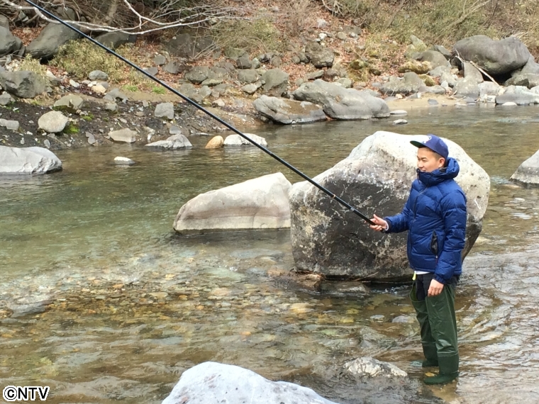 町を散策していると、川で釣人を発見! 3月1日からヤマメ釣りが解禁されたそうです。