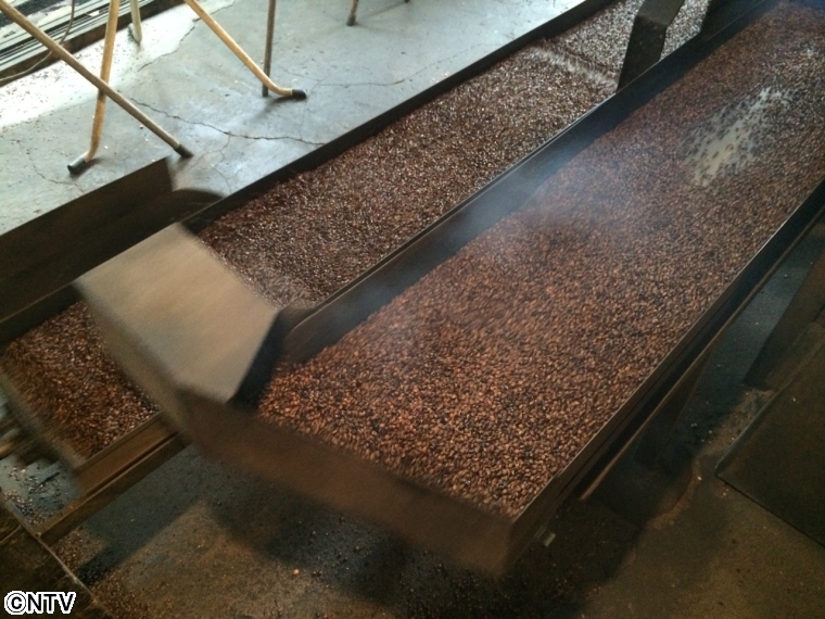 散策をしていると、麦茶工場を発見! いい香りにつられて訪ねてみました。 麦茶作りは2つの石窯で大麦を煎り、完成させていくそうです。