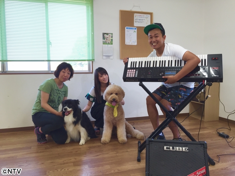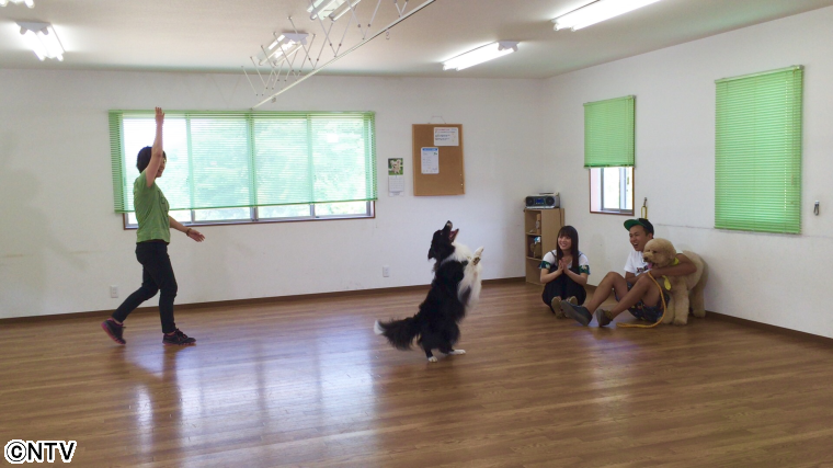 施設のトレーナーさんとパートナーのマイルくんにまずは「ドッグダンス」を見せてもらい、その後きいちゃんとジジはダンス、僕は音楽の担当に分かれて練習!