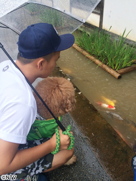 4日目は津和野町を旅しました。 街を散策していると道の脇に用水路があり、そこにたくさんの鯉がいました! たくさんの鯉にププもビックリしてました。