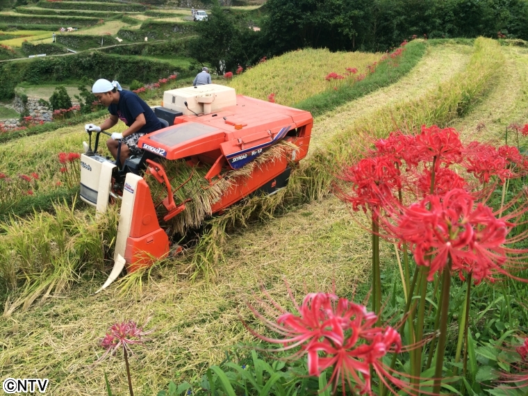 彼岸花が咲いている棚田を訪れたんですが、石川県の千枚田とはまた違った風景でとてもキレイでした! そこで稲刈りをお手伝いさせてもらって、トラクターに乗せてもらえることに。 操作は難しかったけど、初めてのトラクターは ものすごく楽しかったです。