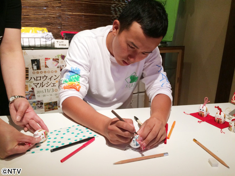あいにくの雨だったけど、地元の幼稚園の子たちに出会いました! 一緒に鬼ごっこをして、歌を歌って楽しかったです。 その後も街を散策してると「追い出し猫」というのを発見し、絵付け体験をしてきました。 なかなか、いい追い出しヒロアキと招きジジができたと思います!