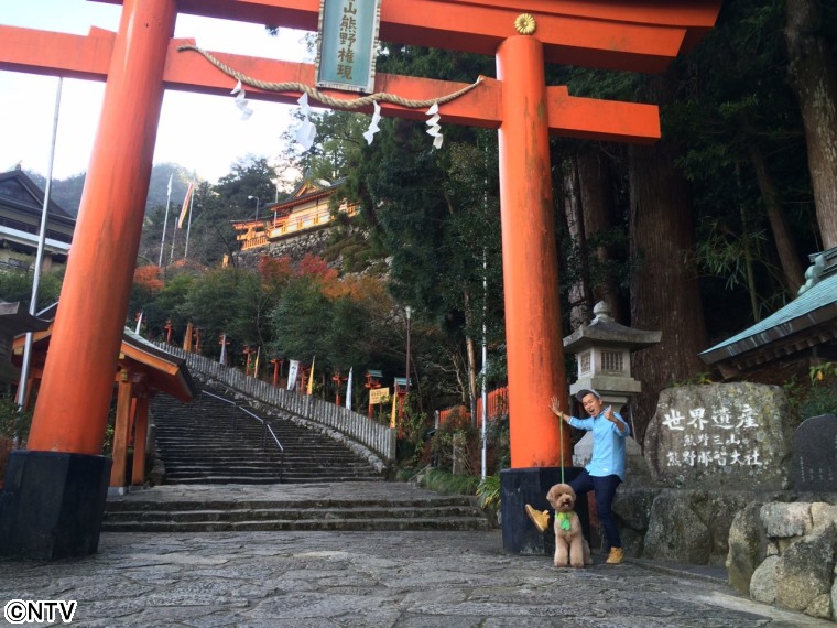 和歌山県の那智勝浦町に訪れ、世界遺産の熊野古道に行ってきました! 大門坂から熊野那智大社へ向かってププと散策。 石段と杉木立に囲まれた空間が、いつもと違う世界に来たみたいで不思議な感覚でした! 那智大社の近くには、133mもの高さがある、那智の大滝があり、あまりのスケールの大きさに僕もププも感動しました。 過ごしやすい気温だったし、熊野古道を存分に満喫しました!