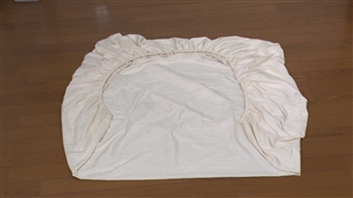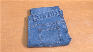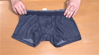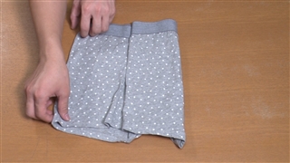 ①上のゴムの部分を外側に折り込み、パンツを三つ折りに
