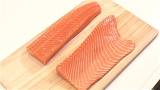 ※サーモンの白くはいった筋を断ち切るようにカットすると筋が気にならないことも!