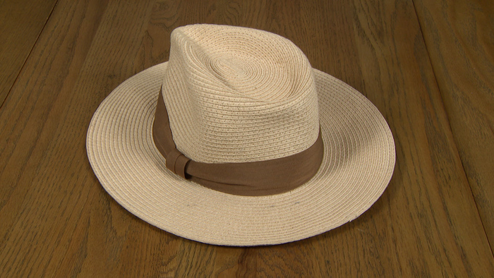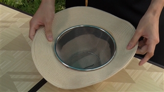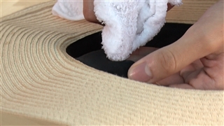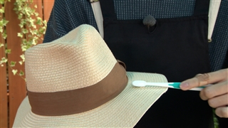 ② 麦わら帽子の内側の布部分にファンデーションなどの化粧汚れが付いていたら、メイク落としシートでさっと拭く。