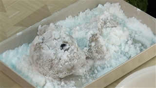 ② ぬいぐるみ全体に水がいきわたったらまんべんなく重曹をつけ30分程度放置。