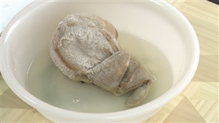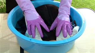 ④ 全体をお湯(40度)でもみ洗いしながらすすぐ。