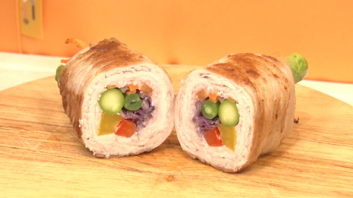 便利おかず=野菜の断面+肉でくるくる