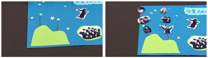 ④ 飛び出させたい写真の下地として使いたい形を画用紙でカットする。(見本では星形)