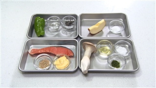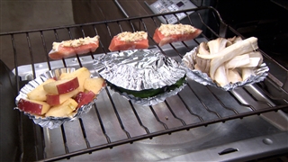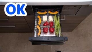 ③ グリルは、奥や側面が温度が高いため、火が通りにくいものを奥へ、通りやすいものを手前になるように並べる。強火で5分焼いたら、完成!