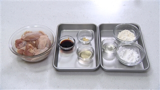 ① 鶏もも肉を一口大に切りポリ袋に入れる。