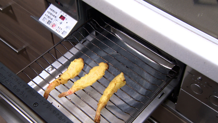 ・通常は、天ぷら鍋で揚げ、油切りバッドに置いて油を切るが、魚焼きグリルを使えば簡単に油を切ることが出来る!