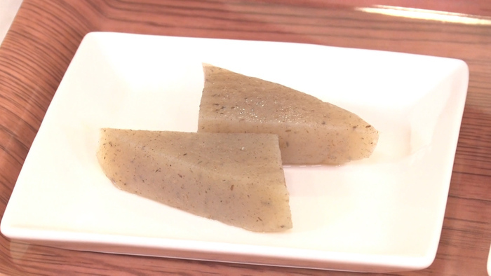①小麦粉と卵を混ぜあわせたものにおでんの汁を入れる。