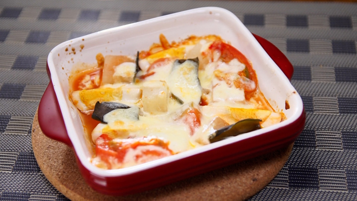 ■ おでんの余りでアレンジ③「おでんトマトチーズグラタン」