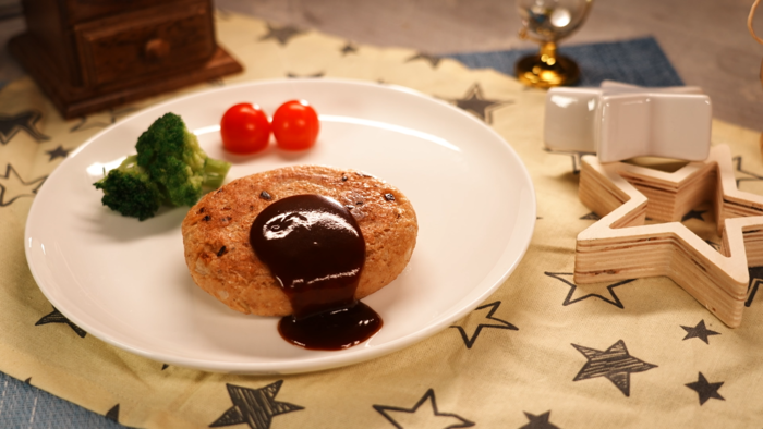 | ③ | フライパンにオリーブオイル小さじ1熱し、②の形整えたら蓋をして中火で各3分程度両面焼きお皿に移し完成。 |