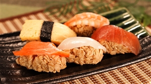 | ① | 米化したオートミールを、ごま油ひいたフライパンで 具材と合わせて炒める。 |