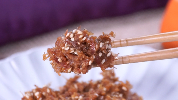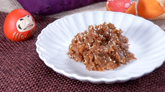 ②鰹節と白いりごまを入れ、再度よく混ぜ、完成
