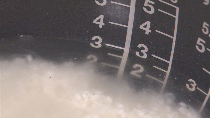 ・お米を研いだら冷たいミネラルウォーターを米の合数分入れ、すぐに炊飯器にセットしスイッチを入れる
