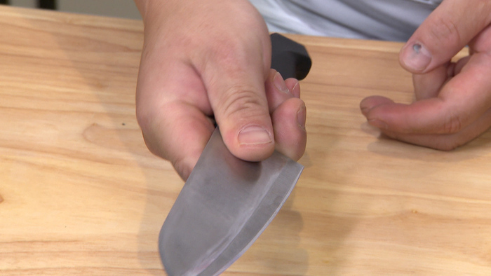 ②親指と人差し指で刃の両側を挟み込むようにする!