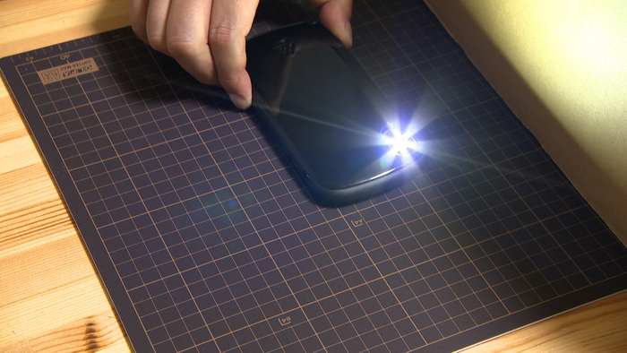 ⑤携帯のライトをオンにしてダンボールをかぶせる。