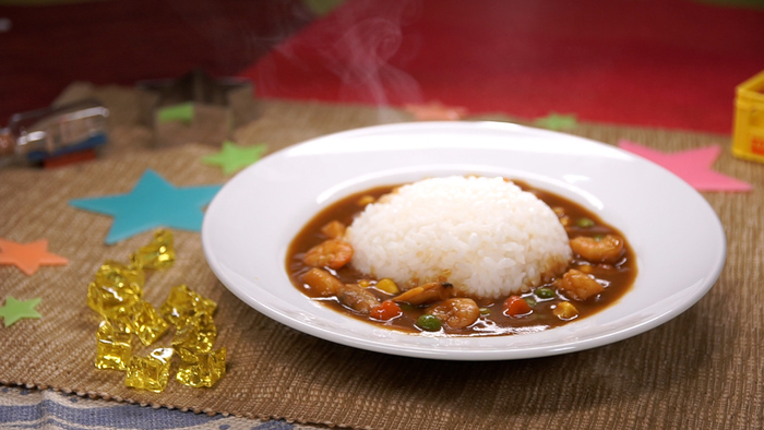 ③出来上がったらマグカップを取り出し、カレーをよく混ぜる。