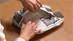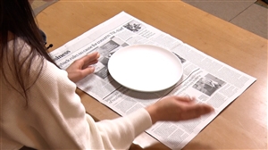 ①お皿を新聞紙の中央に置く