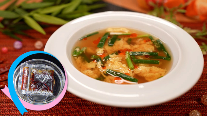 ③沸かしたお湯に鶏ガラスープの素、そして餃子のタレを入れる