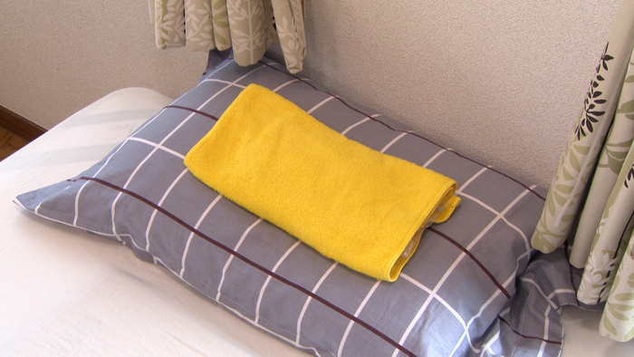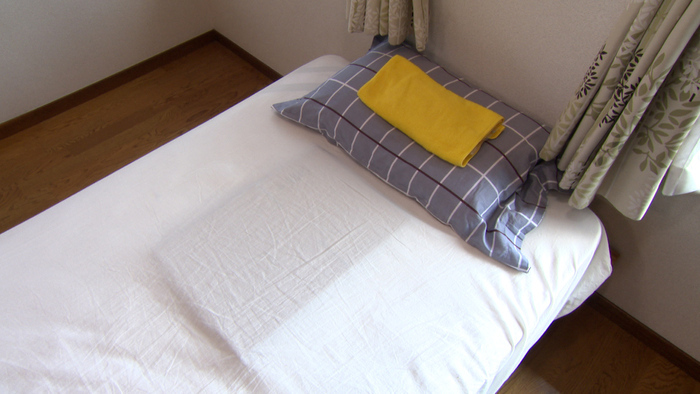 ②シーツの下に腰の上から肩甲骨のあたりに当たるように敷き、完成!