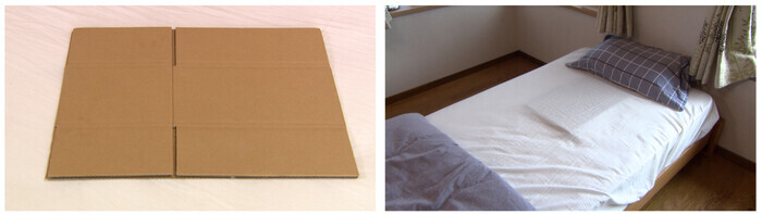 ダンボールが程よく硬いので、背中が敷き布団に密着せず、通気性を確保でき涼しくなる!