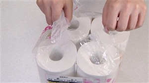 この方法では、キレイに開けることが出来るため、トイレットペーパーをそのまま袋に保存することが出来たり、トイレットペーパーが無くなった際には、ゴミ袋として利用可能に!