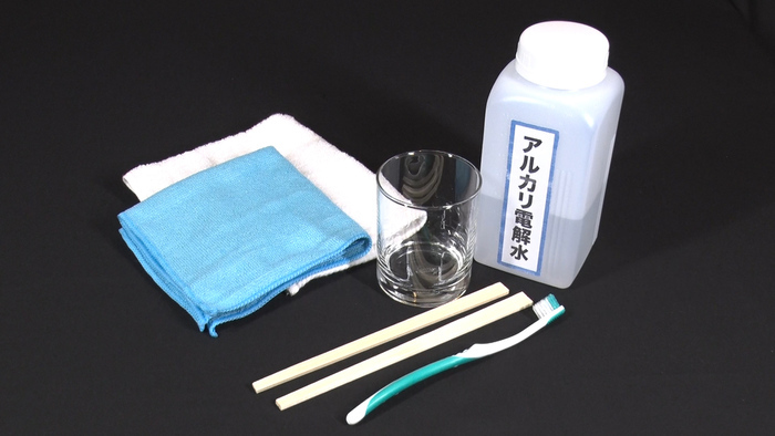 (アルカリ電解水をつけたタオルで汚れを拭き取っても良い)