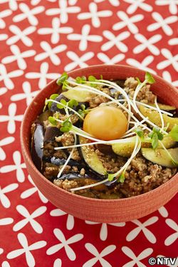 もこみち流 なすとひき肉のみそ炒め丼 〜卵黄のせ〜