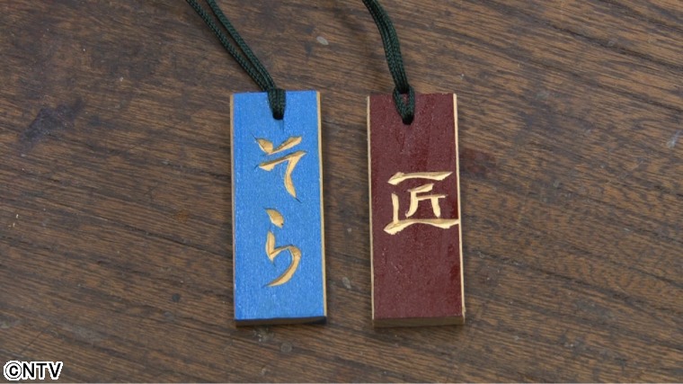 なんと、そらと僕のために名前入りのストラップを彫っていただけるということで、作っていただきました!