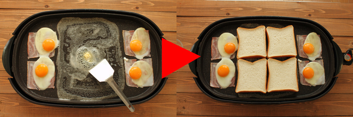ホットプレートバタートースト&カリカリベーコンエッグ