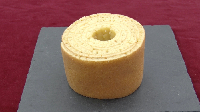 ⑨ ラップの芯で生地を巻き取ったら、⑥~⑧の工程を計3回繰り返し完成!