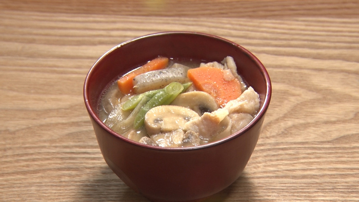 ※味噌汁は味噌を入れた後に沸かすのは厳禁だが、豚汁は半量味噌をとかして軽く煮込むことで、材料に味がはいり美味しく仕上がる
