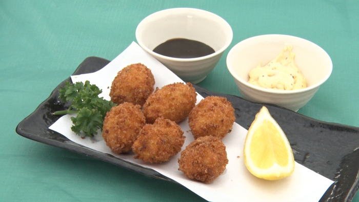 ③ パン粉の上に1口サイズに分けて置き、カット餅を入れて丸める
