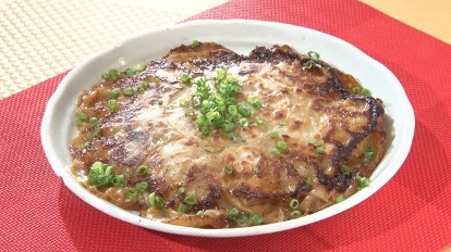 ⑤ 片面を中火で5分間焼き、ひっくり返したら、もう片面は、水を入れて、5分間蒸し焼きにする