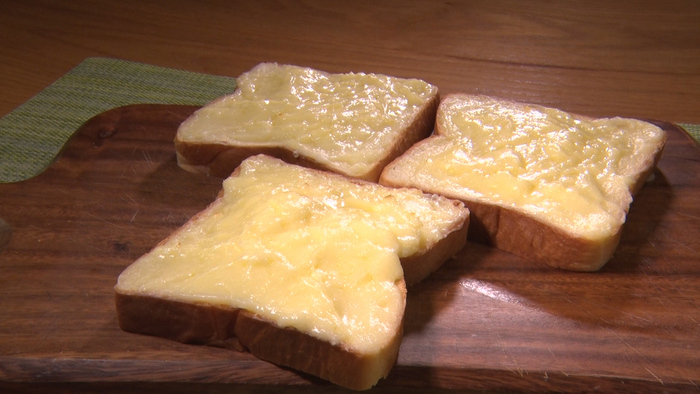 ⑤食パンにクリームを塗り、霧吹きで軽く水をかけた後、200度に予熱したオーブンで5分ほど焼いたらクリームボックスの完成